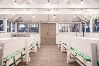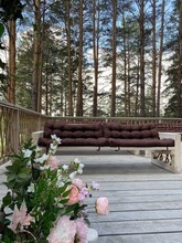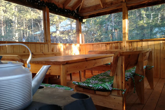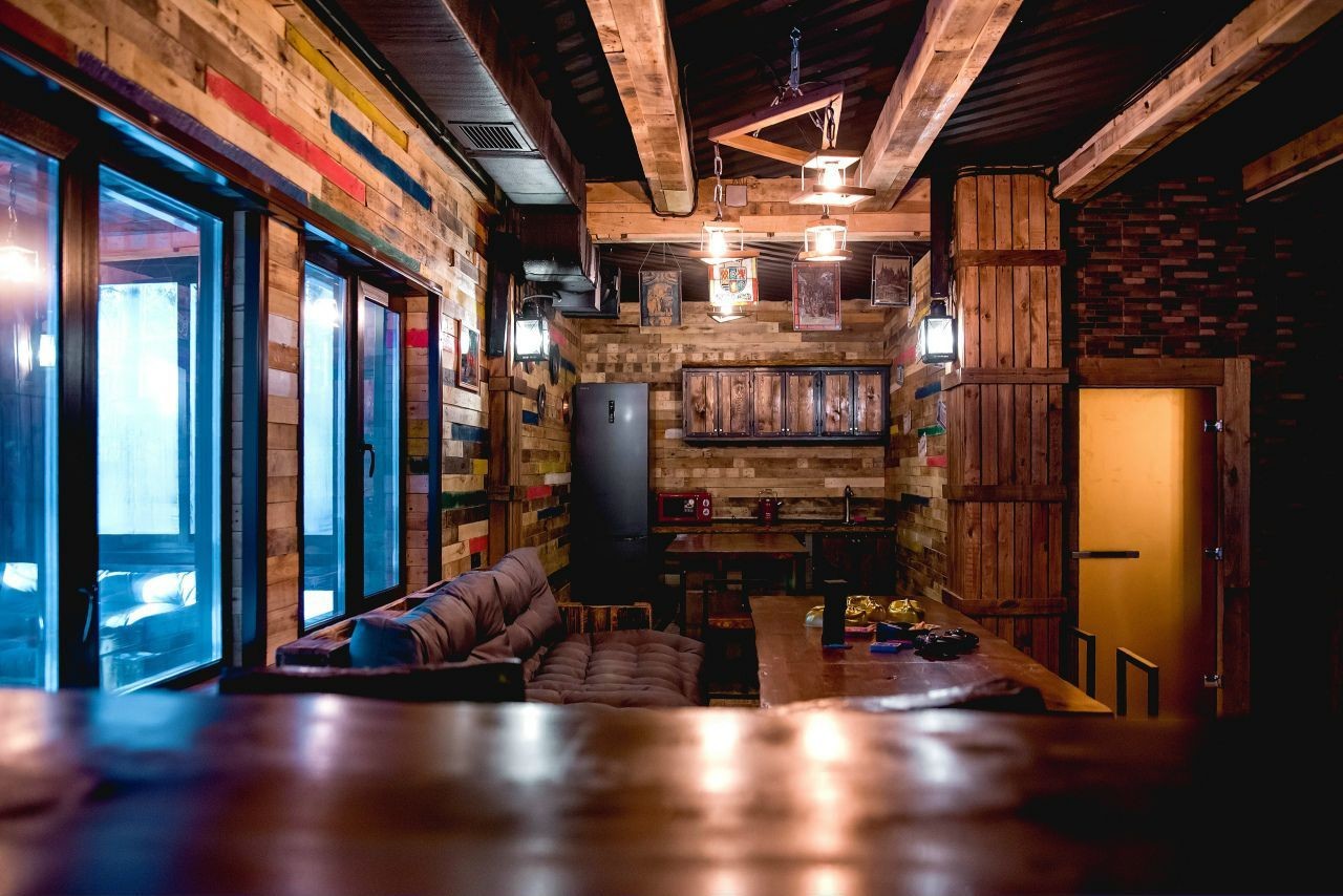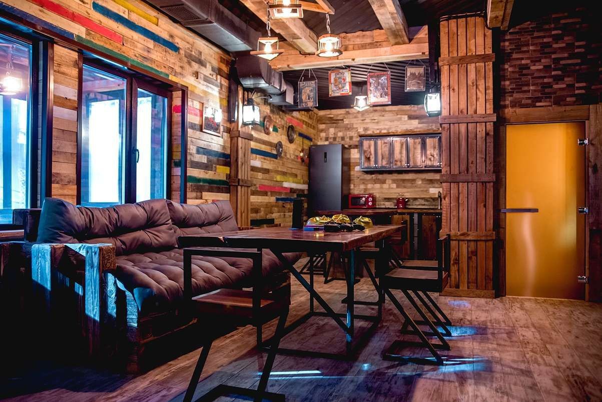 Также можно арендовать двухэтажный дом (до 20 гостей). Коттедж площадью 135 квадратных метров оборудован всем необходимым для комфортного отдыха: 5 спальных мест, кухонная зона, спа-зона с баней и бассейном, домашний кинотеатр, караоке, игровая приставка, закрытая летняя веранда.